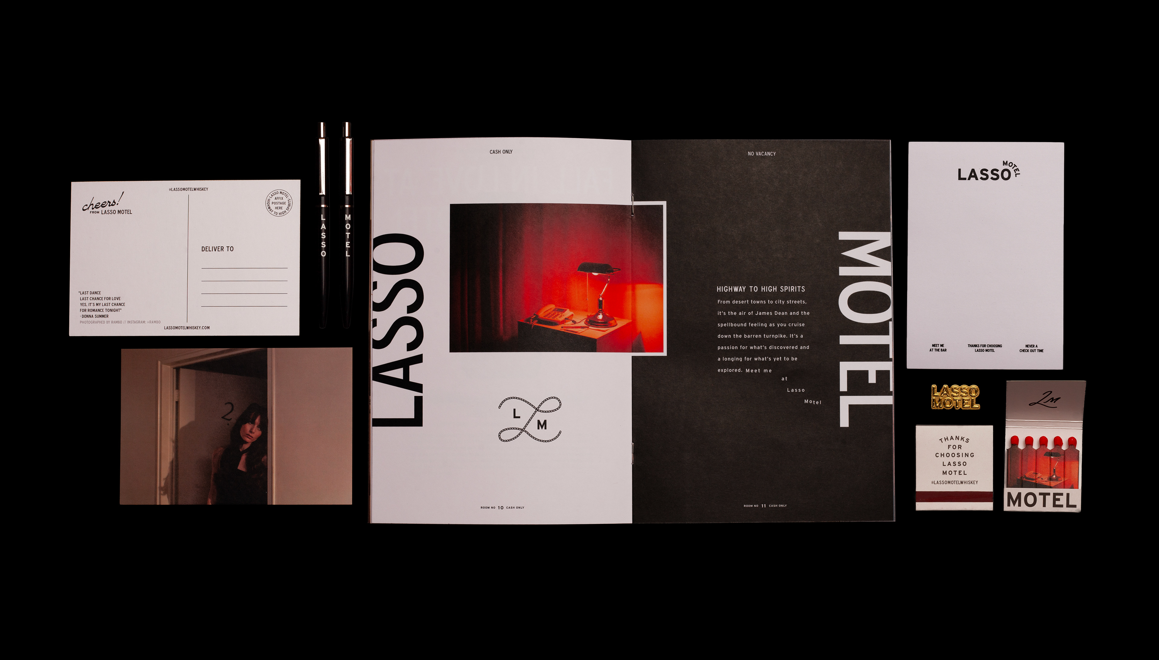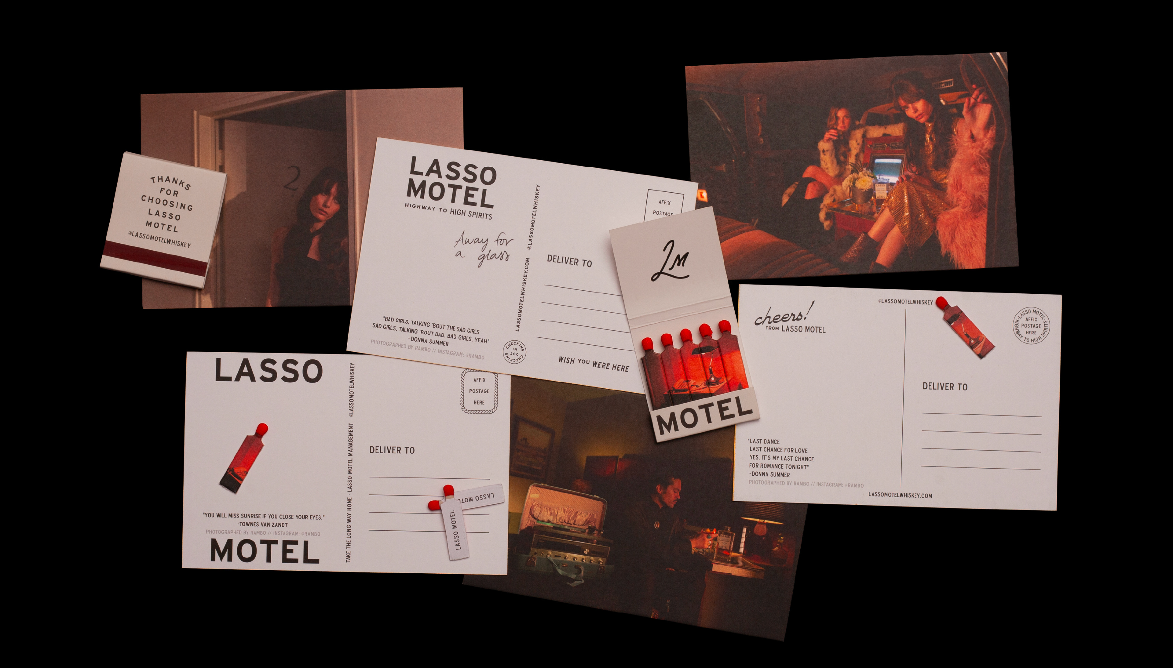 Lasso Motel is an evolving collection of thirteen exceptional whiskeys, each with its own unique label and character. Collectible ephemera like the matches, postcards, and zine bring it to life. Thanks for choosing Lasso Motel, where every glass tells a story.
